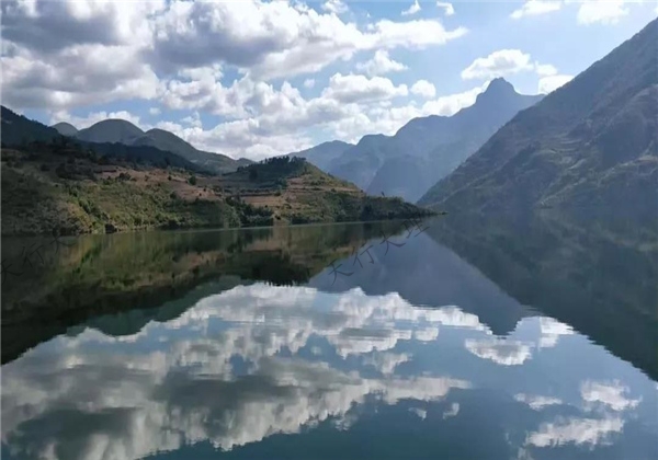 我們乘坐的船只朝著青華方向前進(jìn),一路風(fēng)光如畫,藍(lán)天白云倒影在江面上,隨手一拍都感覺要出大片,還以為是穿越到了桂林山水間。