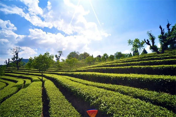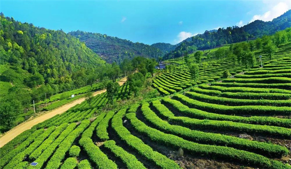 在這里,天空很近,滿眼青翠,空氣都帶著沁人心脾的綠。那一丘接一丘、一嶺接一嶺的茶園,美如眉黛,層次分明地從腳下一直延伸到天邊,最后消失在蒼穹的盡頭。