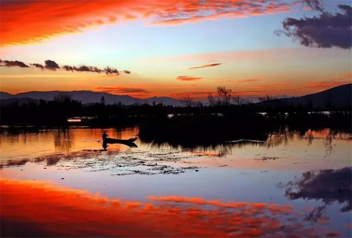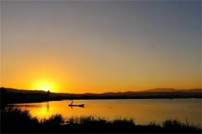 置身洱源西湖,仿佛置身一個(gè)神秘的天國。除了風(fēng)聲、歌聲、鳥聲,整個(gè)西湖闃寂無聲。秋日的余暉輕輕拍打著它,它仰天向上,把神秘的幸福密碼深壓在身下?!昂馐幯鷰谆丶y,漁父歌聲鬧水濱,信口舢敲湘漢句,斷腸弄笛雁鴻云。三三對(duì)白煙蓑合,兩兩歸帆獲岸分。最趁夕陽含缺處,前村沽酒帶余醺?!痹谶@樣一幅背景中,偶爾還能看到牧童嬉鬧,大娘浣衣,村姑笑吟。