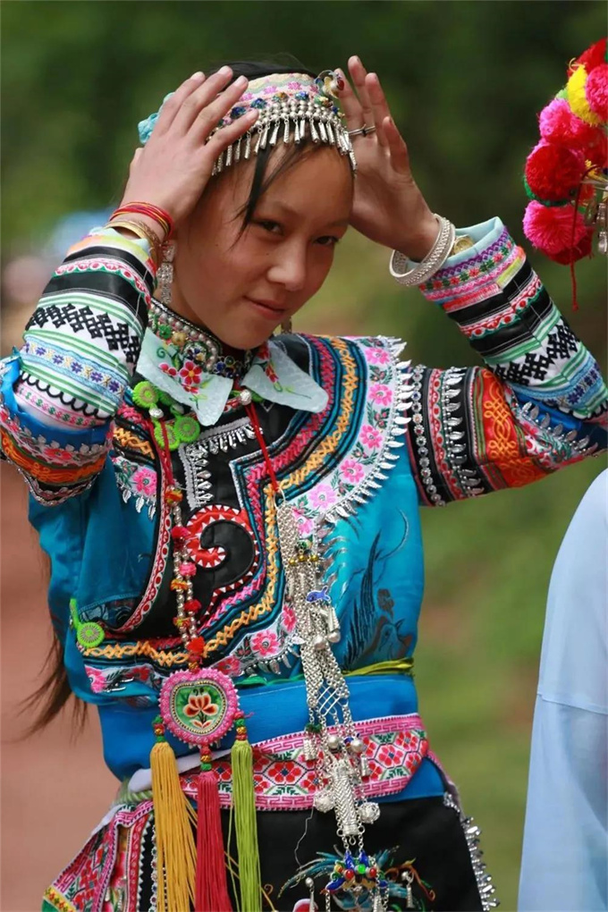 對大自然色彩綺麗繽紛的熱愛,成為她們對美追求的無限源泉,來自勞動、生活中的點滴智慧,融流進一針一線,織就一件件華彩霓裳。在彝族女子行走坐立,舉手投足間,綺袂翩搖,穿越時代的絕美風華入眼而來……