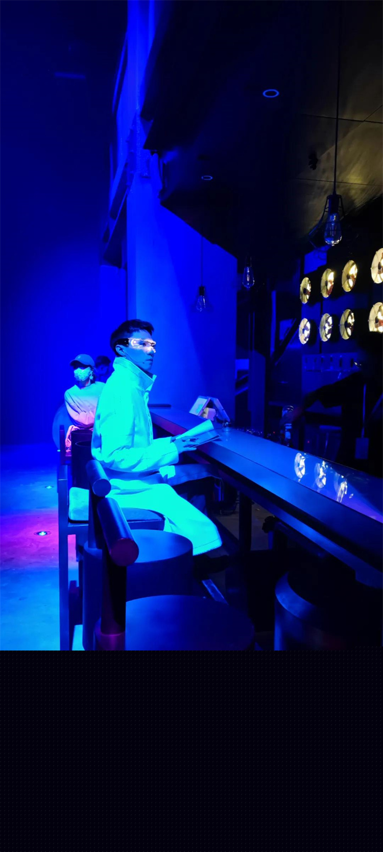 戲劇體驗通道分為A線和B線。A線以完美女王和平凡男孩阿t的愛情故事為主線,唯美浪漫;B線解密圖靈教授的內心和隱秘,充滿反轉和沖突。3500平方米的老廠房,以“變壓”為創(chuàng)意進行改造,形成了具有沖擊力的情緒酒吧、欲望花園、秘密試驗場與心音嗨場四大主題空間,整個變壓工廠都是《幻境2099》的舞臺。